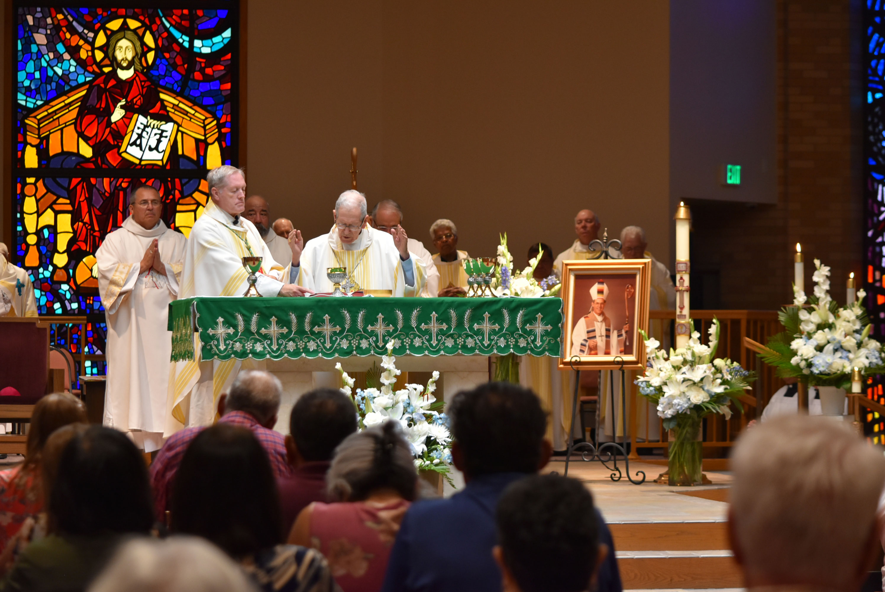Bishop Robert Coerver celebrated, and Bishop Emeritus Placido Rodriguez concelebrated, a Memorial Mass for Archbishop Michael Sheehan.