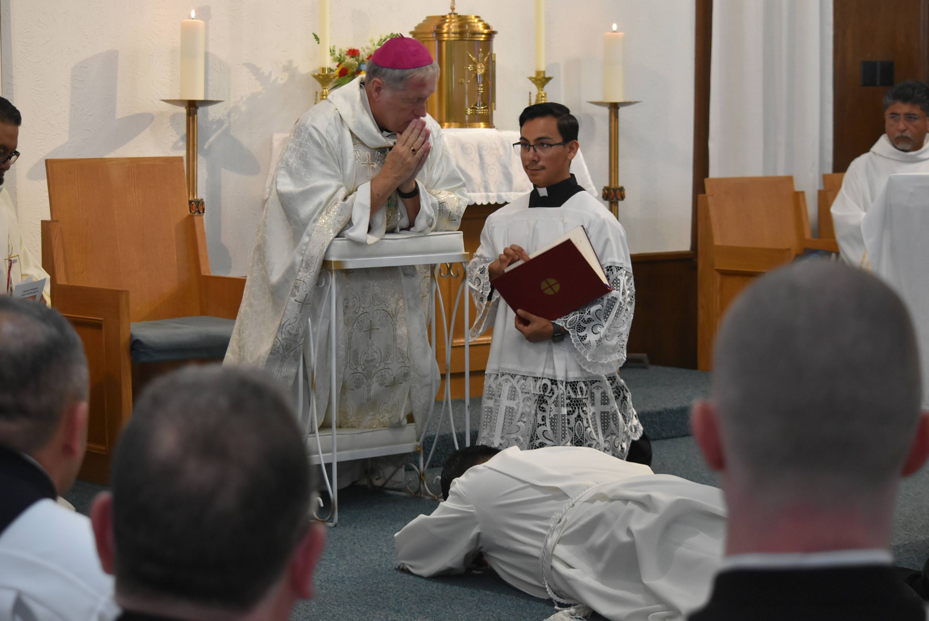 Bishop Robert M. Coerver celebrated the Transitional Diaconate Ordination Mass for Dennis Marcos at Sacred Heart, Plainview.